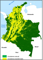 Figura 2. Ecosistemas terrestres naturales y transformados en Colombia Fuente: [11]